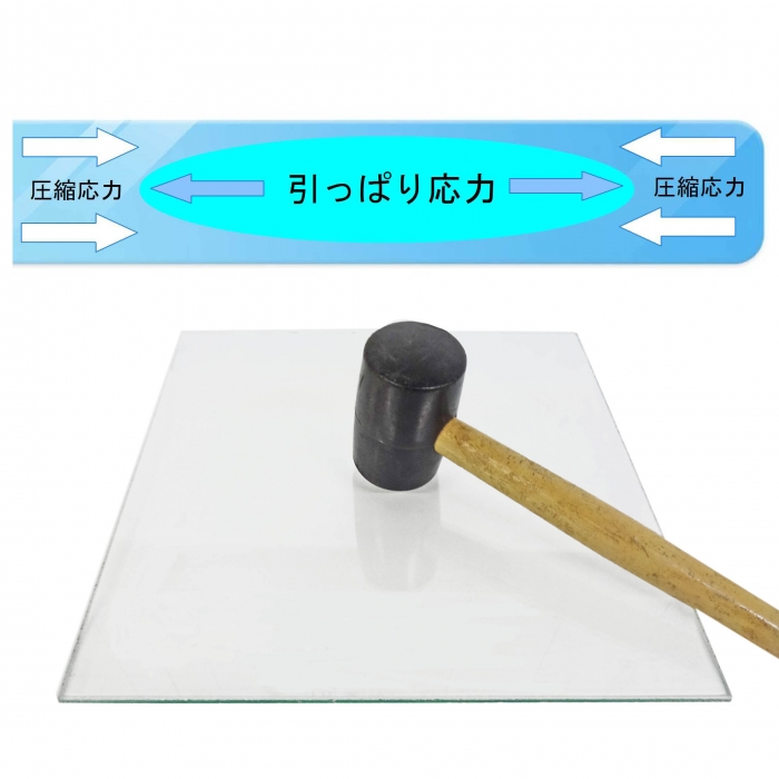 ガラス内に引っぱり応力と圧縮応力を発生させて強度を持たしています。