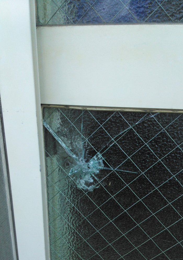 網入りガラスは簡単に割れてしまいます。